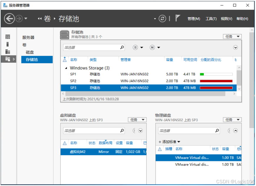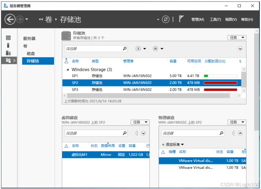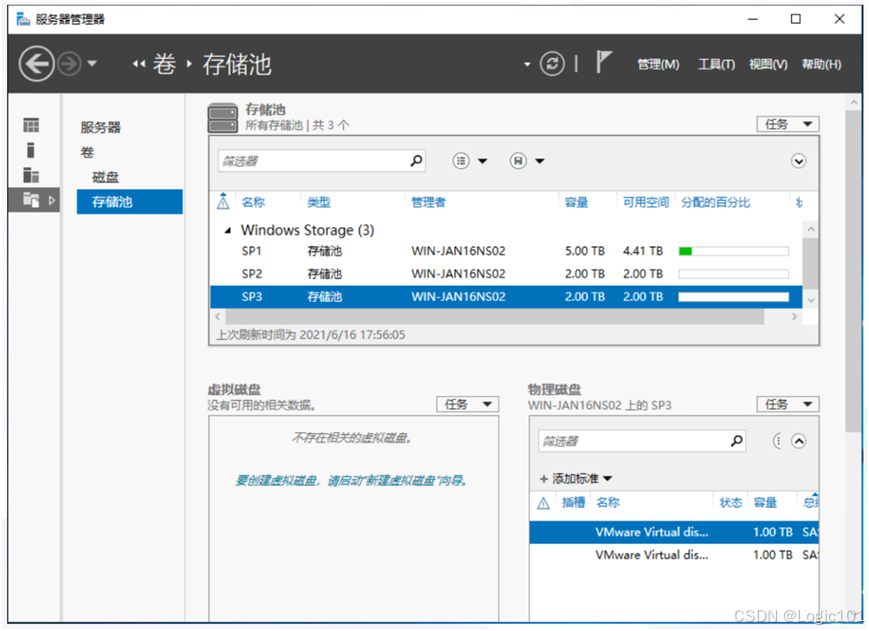 使用两块磁盘创建存储池SP2,使用另外两块磁盘创建存储池SP3。