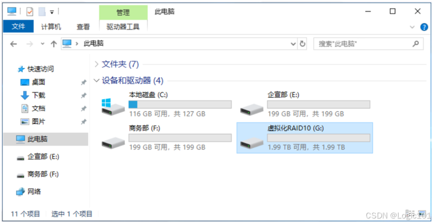 打开文件资源管理器,可以看到创建的磁盘分区已正常识别,结果如下图所示。