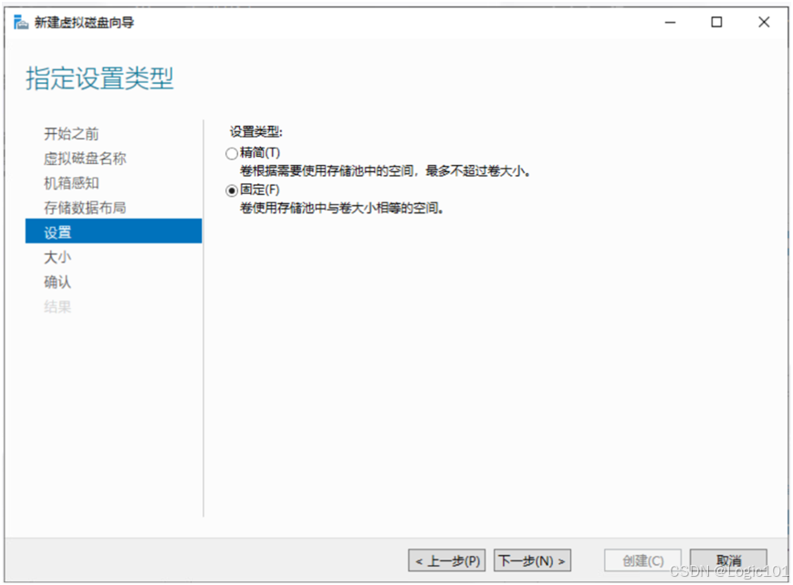 (5)在【设置】中选择【设置类型】为【固定】(默认),单击【下一步】,如下图所示。