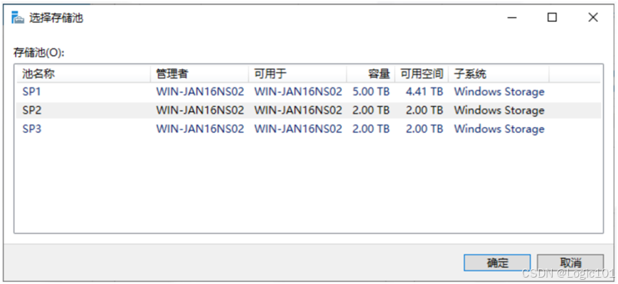 (2)在【选择存储池】中选择【SP2】,单击【确定】,如下图所示。