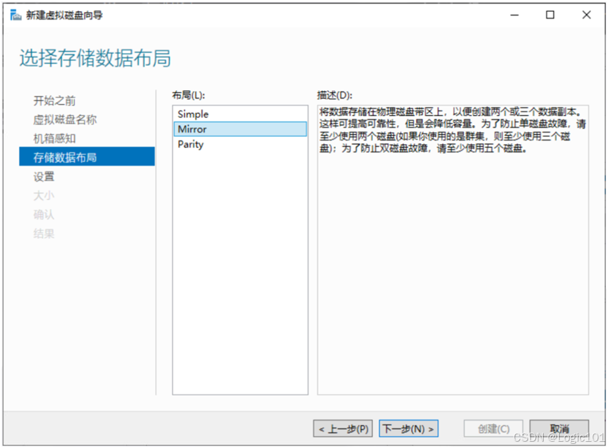 (4)在【存储数据布局】中选择【Mirror】,单击【下一步】,如下图所示。