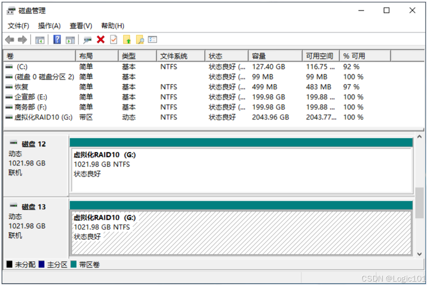 (9)两个存储池上创建的虚拟磁盘如下所示。