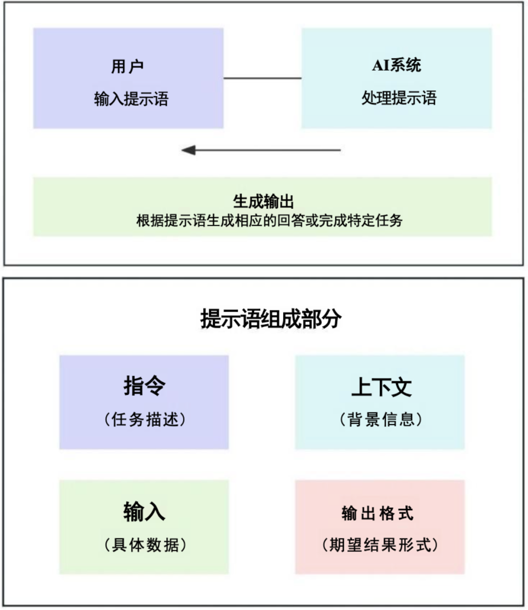 - 指示(Instructions):明确模型要执行的具体动作,如 “总结”“分析”“生成”“翻译”;