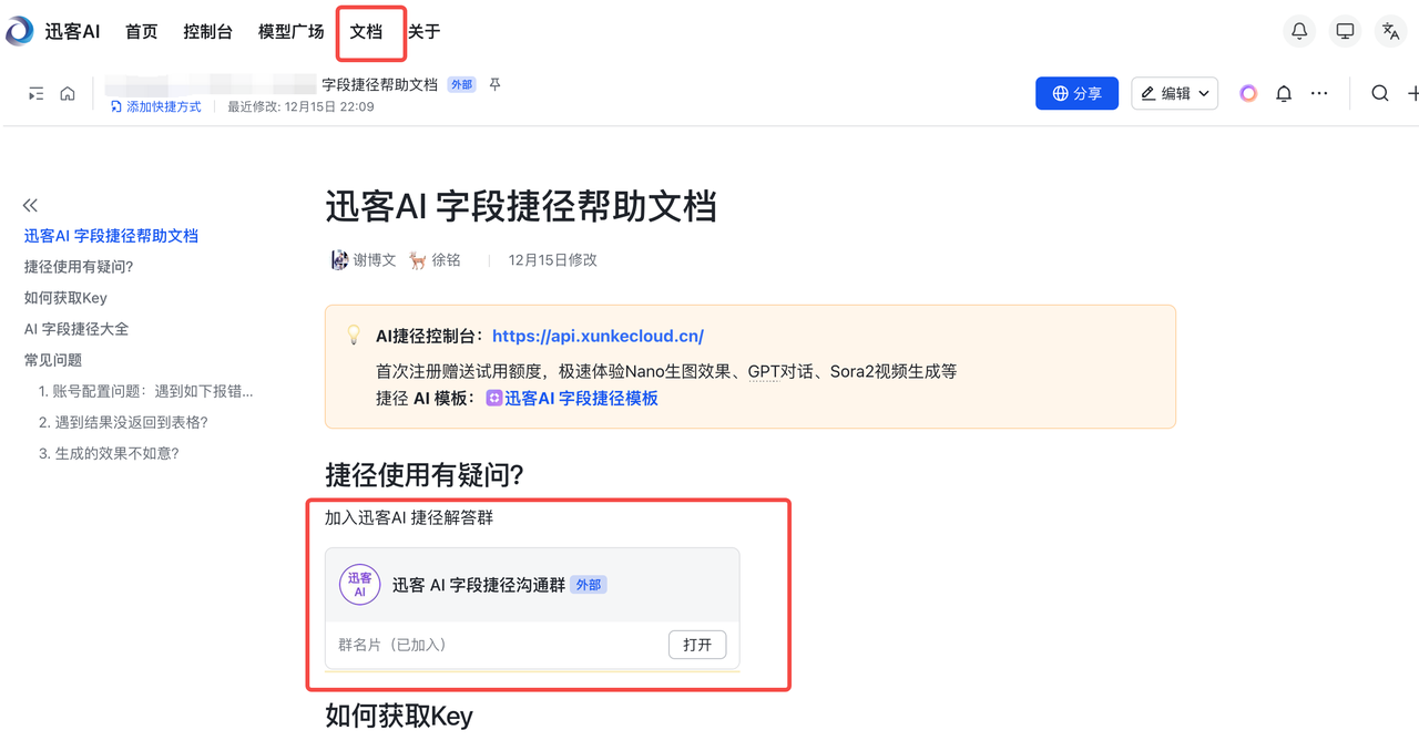 点进去网站之后,我们点击【文档】然后进飞书群!里面就可以直接找到相应开发者了
