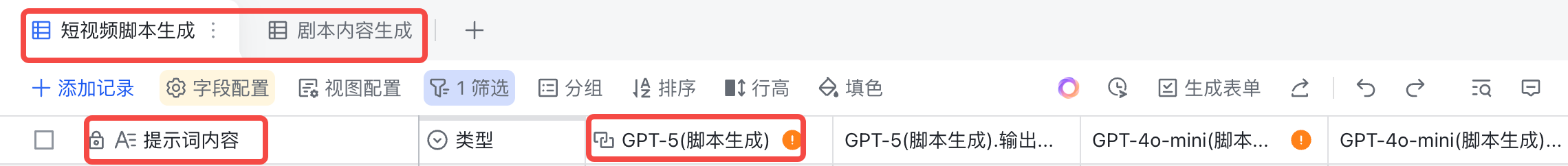 🔥🔥这里就以「短视频行业脚本生成」为例,大家可以根据自己的需求去配置相应的字段就可以了!我手把手教你们如何在飞书多维表格上用上chatgpt大模型,大家赶紧收藏起来吧!