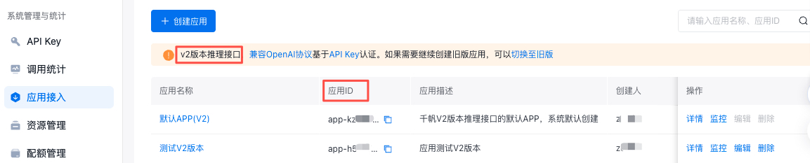 v2版本接口协议对齐OpenAI接口协议,且完全适配OpenAI SDK,您可以直接使用OpenAI SDK调用v2版本的模型服务。例如支持在请求Body中通过入参 “model” 指定您想要调用的模型,而在V1版本中,调用不同的模型需要切换至不同的API地址。