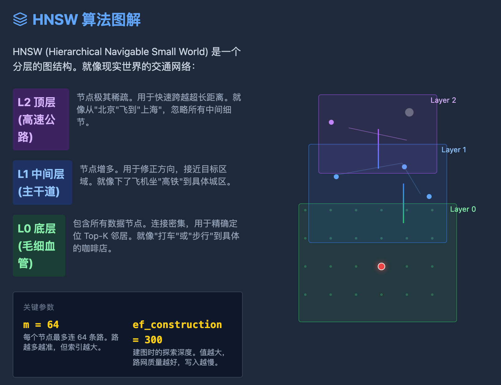 但在展示惊人的测试数据前,我们需要先理解支撑这一切的核心算法 —— HNSW。