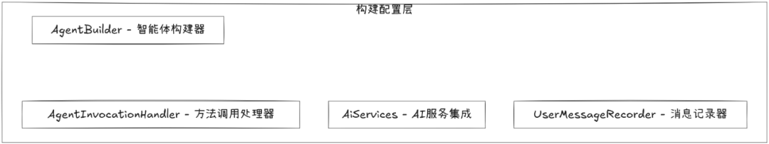 // AgentBuilder内部实现的关键部分publicclass AgentBuilder<T> { privatefinal Class<T> agentServiceClass; // 智能体基本属性 String name; String uniqueName; String description; String outputName; boolean async; // AI模型和内存相关配置 private ChatModel model; private ChatMemory chatMemory; private ChatMemoryProvider chatMemoryProvider; // 工具配置 private Object[] objectsWithTools; private ToolProvider toolProvider; // ... 其他配置}