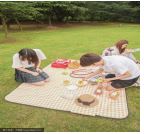 文心一言大模型:图像中有 3 个人,他们围坐在草坪的野餐垫旁,桌上摆放着食物和饮料,几人面带笑容,正在进行野餐活动。 通义千问大模型:识别到图像内有 3 人,他们坐在户外的草地上,围绕着野餐篮和餐布,正在享受野餐,氛围轻松愉快。 |