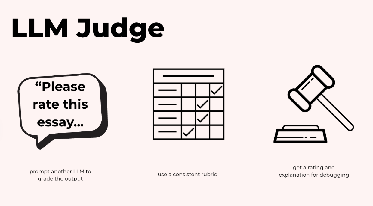 一种方法是使用第二个大语言模型(LLM)来评判输出结果。让它使用统一的评分标准,按照1到5的等级对每篇文章的质量进行评分。