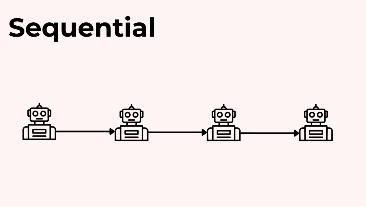 这是最简单且最可预测的方式。每个代理完成其工作后,将输出传递给队列中的下一个代理。