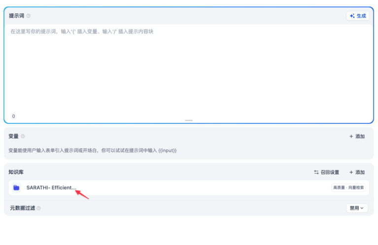 - 将上一步索引的知识库添加为聊天助手上下文。