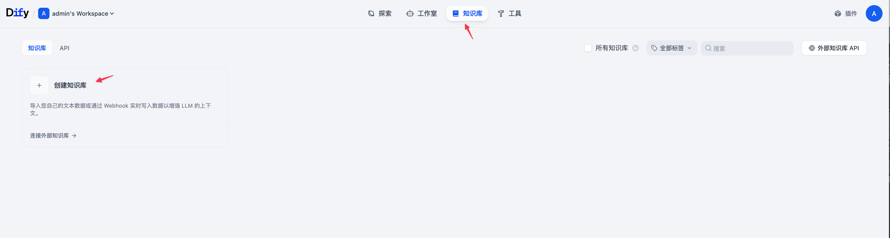 - 进入 知识库 标签页 → 点击 创建知识库。