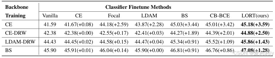 ⑥CIFAR100-LT数据集下不同分类方法的测试:
