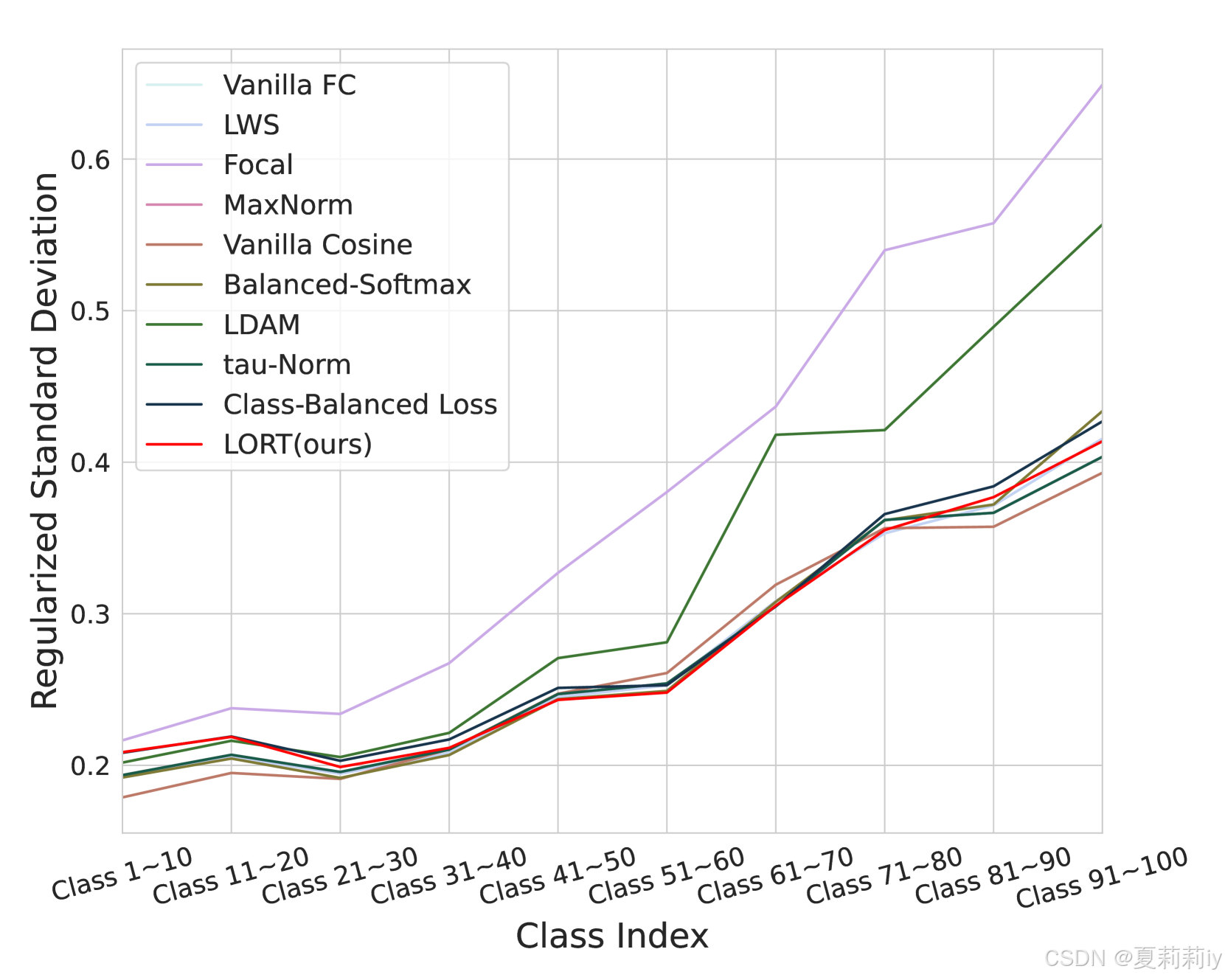 ⑦模型对头类、中类、尾类的判别能力(Logits Magnitude)越平衡,整体准确率越高。(根据图1来看,我认为作者言下之意是对于每个大类的类,σ越小越好)