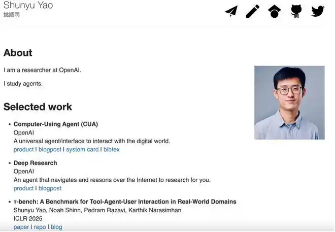先扒扒这位主角——姚顺雨,27 岁,在 OpenAI 期间深耕的方向,用行话说,是多模态、强化学习与具身智能的交叉领域。说人话就是:研究怎么让 AI 不仅会“想”,更懂得如何通过“身体”(不管是虚拟代理还是实体机器人)去“做”,去和这个物理世界互动。