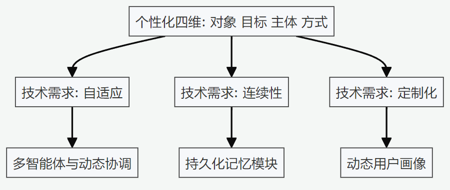 对象/目标/主体/方式四维定义,映射为三条硬性技术需求:自适应、连续性、定制化。