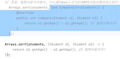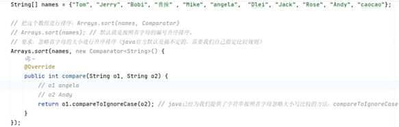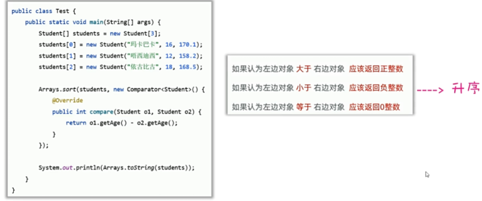 sort方法内部会调用匿名内部类对象的compare方法,对数组中的学生对象进行两两比较,从而实现排序。