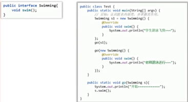调用别人提供的方法实现需求时,这个方法正好可以让我们传输一个匿名内部类对象给其使用。