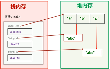 String创建对象的区别:只要以“...”方式写出的字符串对象,会存储到字符串常量池,且相同内容的字符串只存储一份;通过new方式创建字符串对象,每new一次都会产生一个新的对象放在堆内存中。