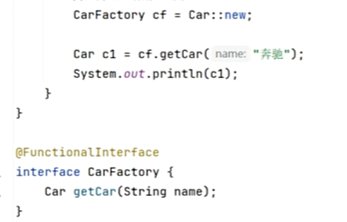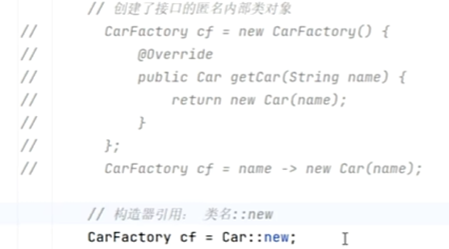 使用场景:如果某个Lambda表达式里只是在创建对象,并且”->”前后参数情况一致,就可以使用构造器引用。