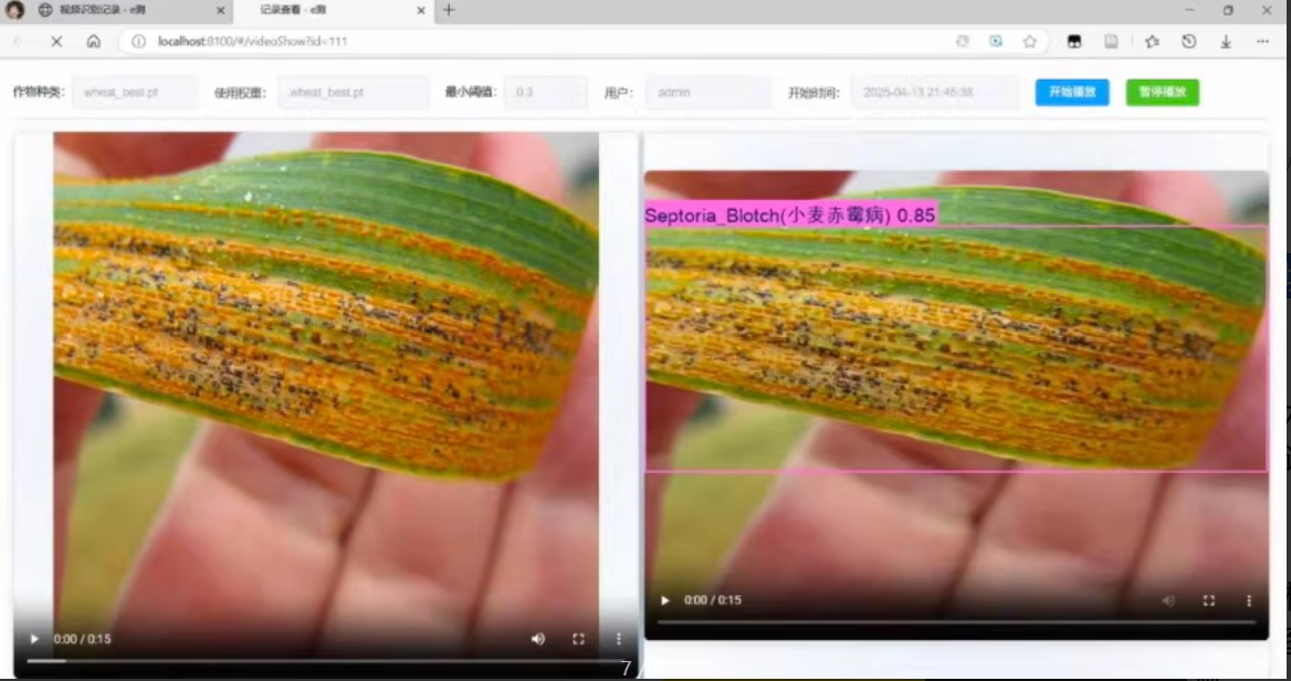 视频检测与摄像头检测:支持视频文件上传分析,并可接入田间固定或移动摄像头,实现特定区域病虫害的连续监测与自动巡检,及时发现病害点并定位。