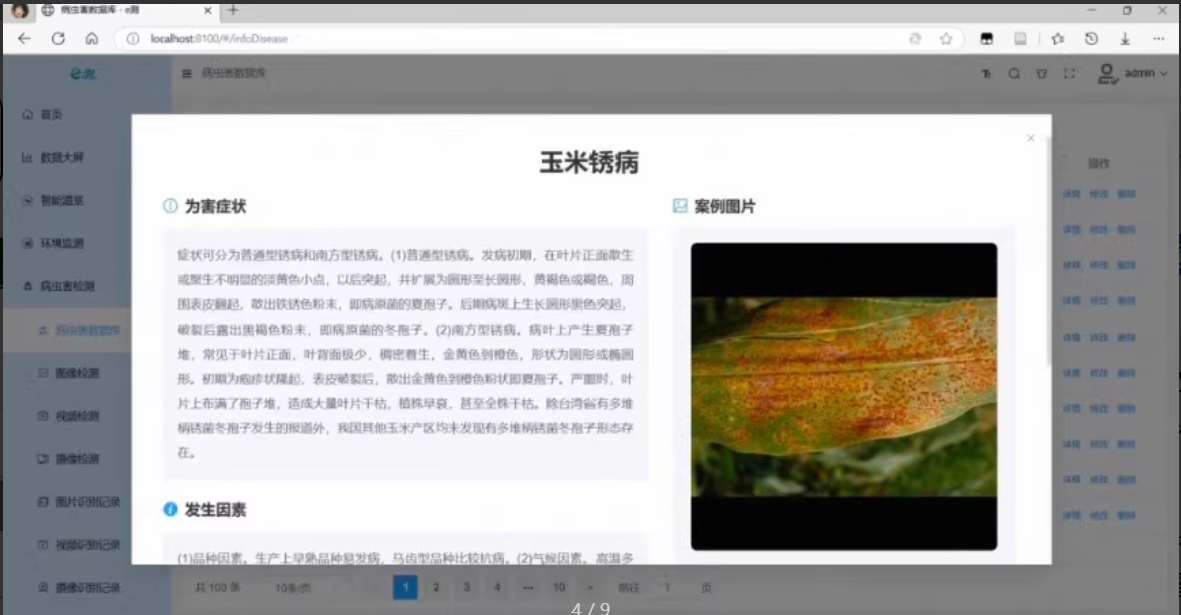 病虫害数据库:提供一个结构化的知识库,包含每种病虫害的详细文字说明、典型症状图片、发生规律、防治要点等,辅助用户学习与确认。