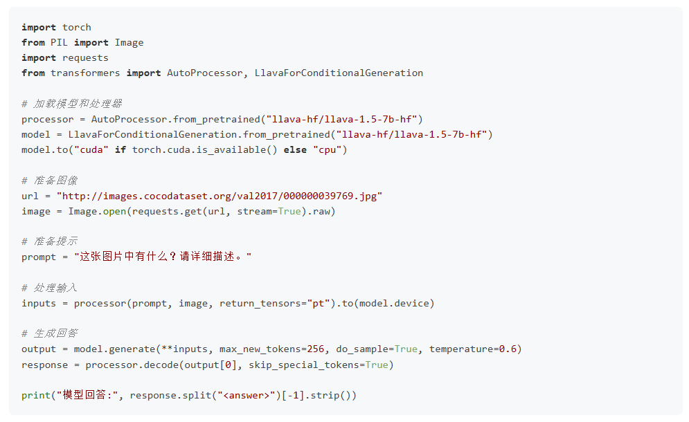 这些模型各自专注于特定的视觉任务。本篇将介绍一类更强大的模型——多模态大语言模型(Multimodal Large Language Models, MLLMs),它们将视觉理解与语言生成能力深度融合,实现了真正的"看图说话"和多轮视觉对话。让我们深入了解这些多模态大语言模型的核心原理和使用方法。