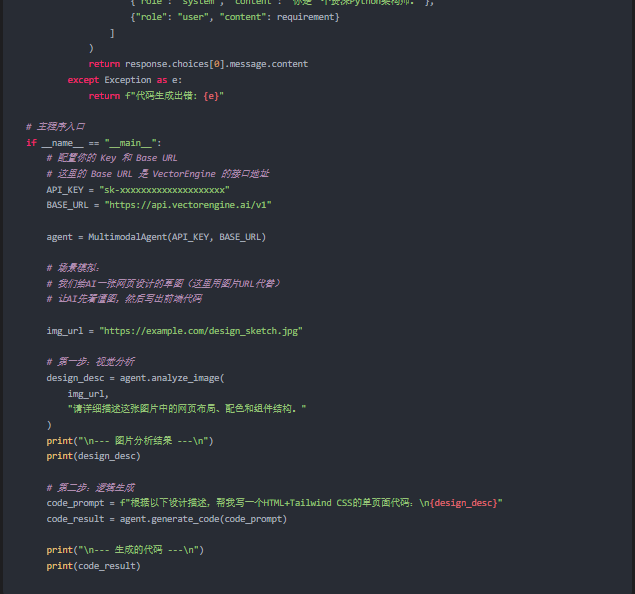 那么2025年,绝对是“多模态智能体(AI Agent)”的爆发年。本次实战我使用的是 VectorEngine 提供的聚合接口。请打开你的 IDE(VS Code 或 PyCharm)。首先,我们需要安装标准的 OpenAI Python 库。在我们的智能体中,它负责“思考”和“决策”。这种“视觉转文本 -> 文本转代码”的链路。AI技术栈的演进速度已经超出了我们的想象。因为走了聚合网关,我们不