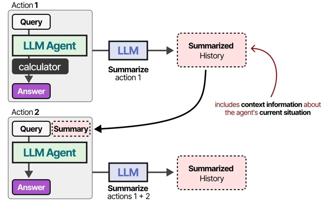 当遇到 LLM 上下文窗口有限,或者对话历史过长无法全部容纳的情况时,我们需要采用更加巧妙的策略。一种有效的解决方案是:使用另一个 LLM 来总结目前为止的对话内容。通过不断对对话进行摘要压缩,我们可以将需要提供给 LLM 的文本长度保持在窗口大小之内。这种方式既减少了需要传递的词元数量,又能够保留对话中最重要的信息。
