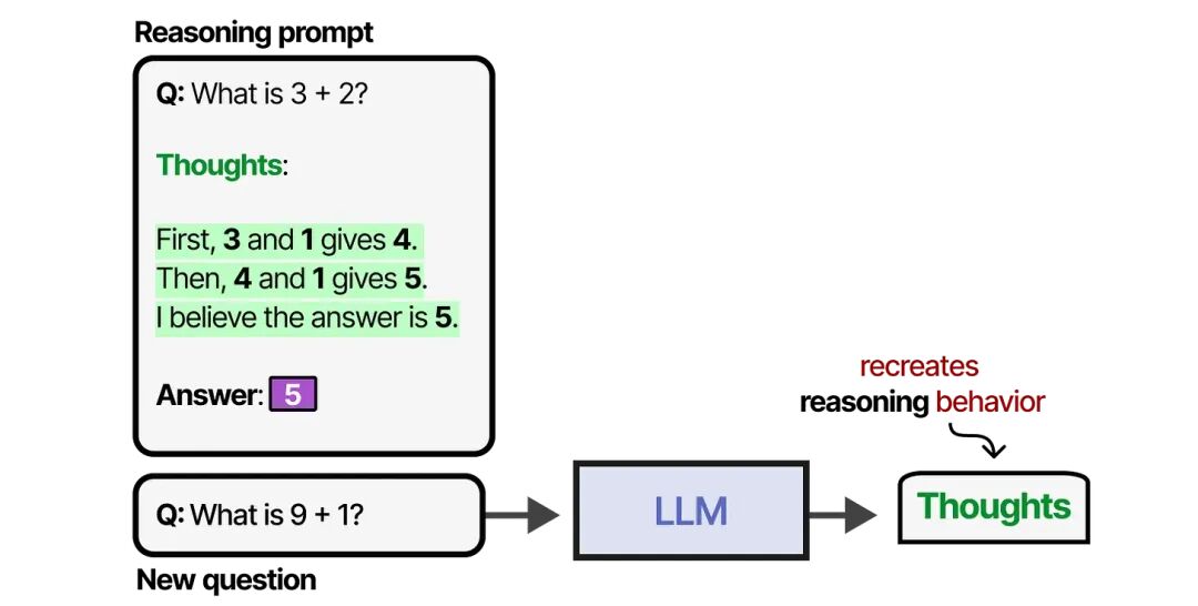 总的来说,我们可以通过两条截然不同的路径来赋予模型推理能力:第一种是“深层改造”——对 LLM 进行微调训练,从根本上让模型学会在回答前先进行推理;第二种是“外在引导”——保持模型参数不变,通过巧妙的提示词工程来引导模型展现推理行为。
