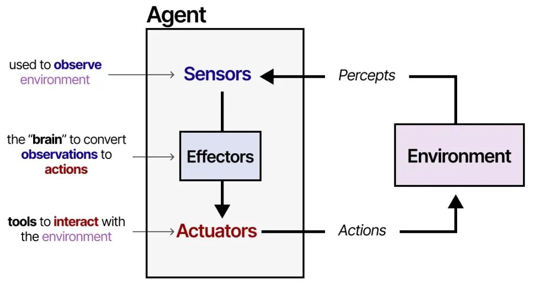 - Effectors(效应器): 智能体的"大脑",根据感知做出决策并采取相应行动。