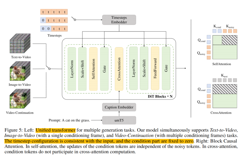 这种设计非常优雅,相当于让模型自己决定“要不要参考历史帧”,自然地形成了文生 / 图生 / 续写的任务闭环。