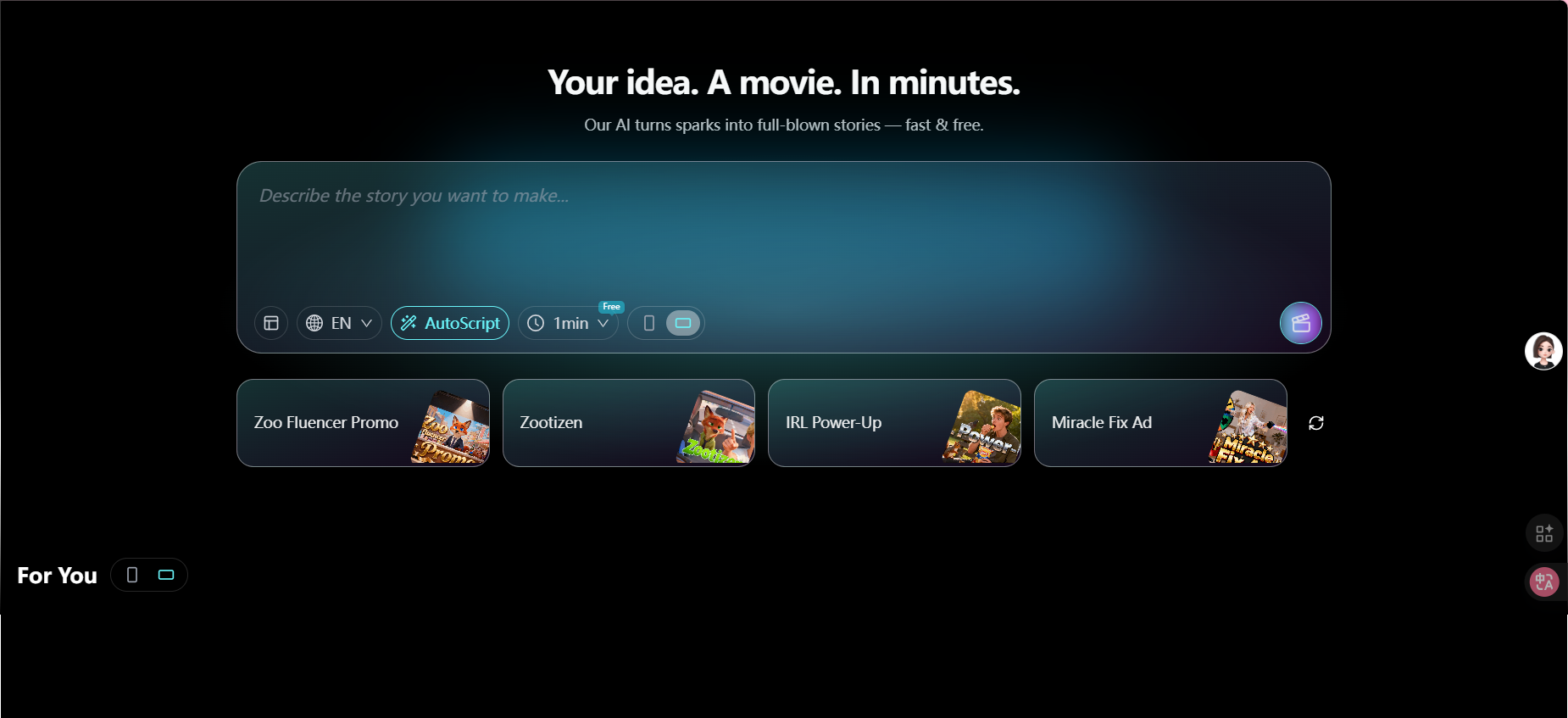 进入创作模式:登录后选择“Story to Video” (故事转视频) 模式。