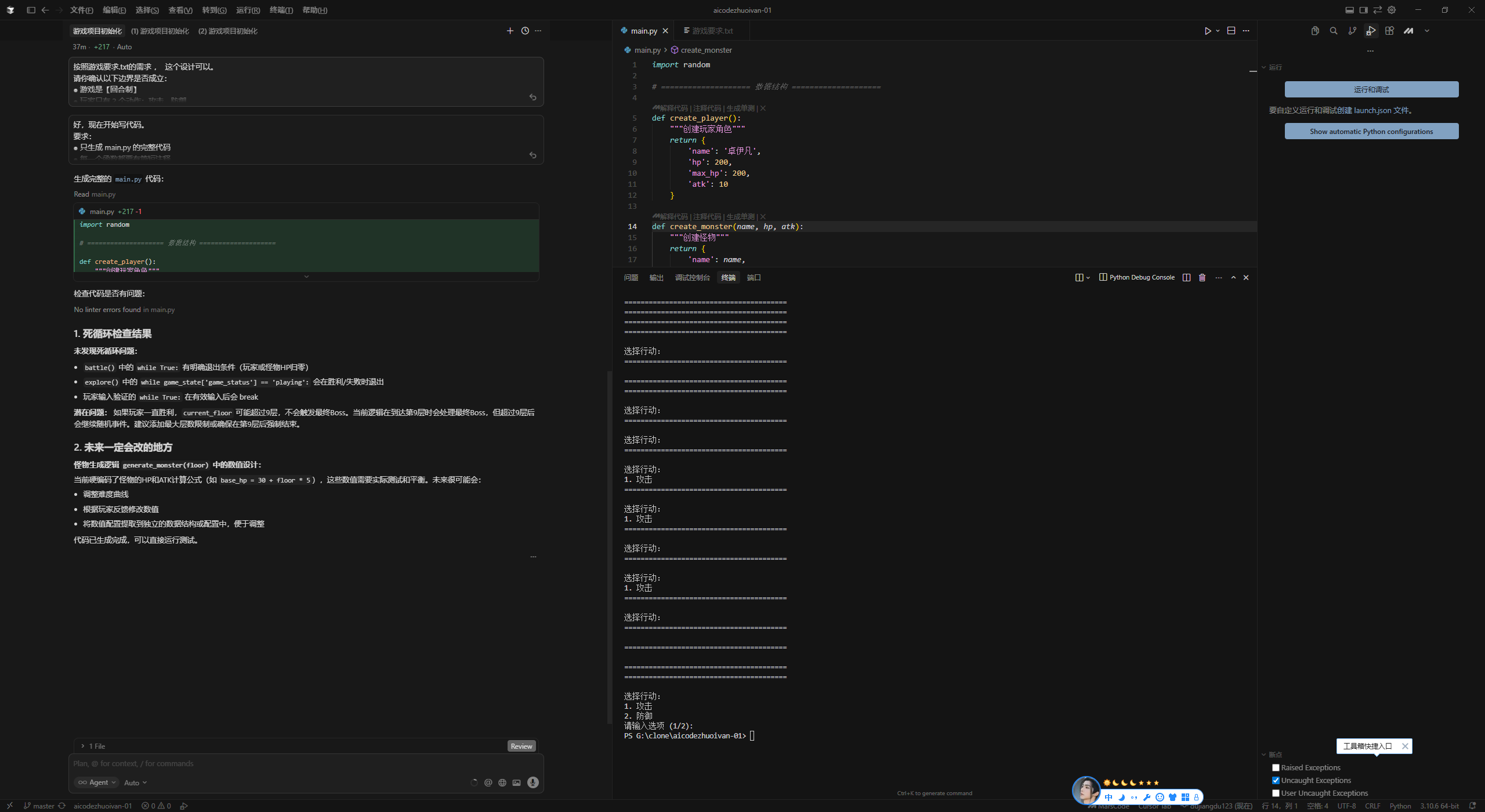 “帮我用 Python / Unity / Godot 写一个小游戏。”