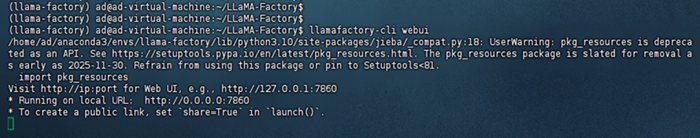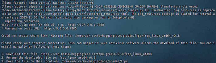 启动 CUDA_VISIBLE_DEVICES=0 GRADIO_SHARE=1 llamafactory-cli webui