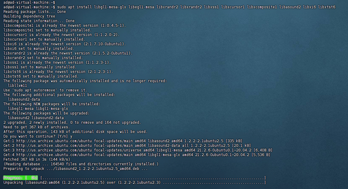 sudo apt install libgl1-mesa-glx libegl1-mesa libxrandr2 libxrandr2 libxss1 libxcursor1 libxcomposite1 libasound2 libxi6 libxtst6