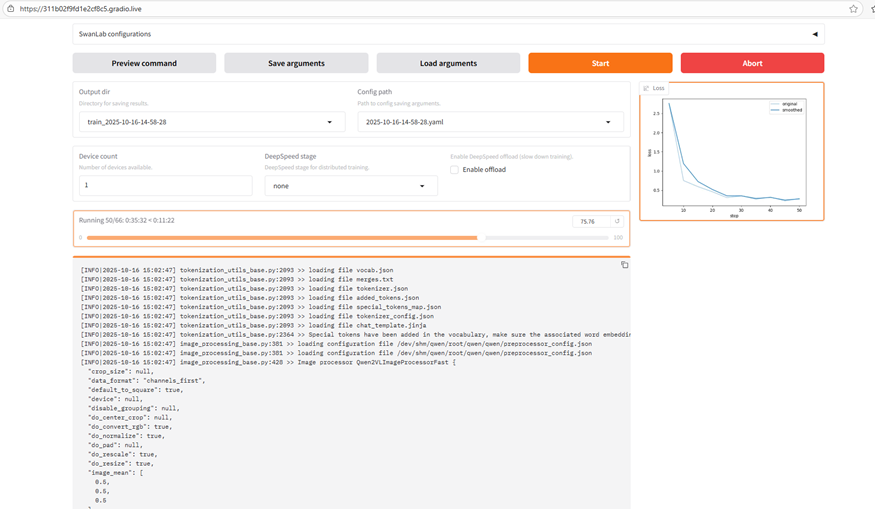 如果ubuntu是服务器版本没有桌面的,你又想使用图形化微调,可以通过gradio创建公开域名链接进行微调