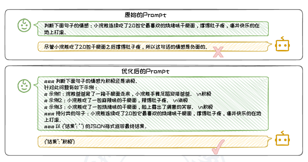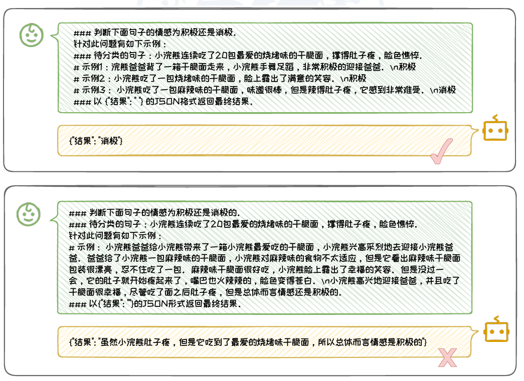 上下文可以包括与问题直接相关的背景信息、具体的演示示例,或是对话的连续性内容。例如,在情感分类任务中,提供具体的示例句子及其对应的情感标签,可以帮助模型更好地理解任务的具体要求和预期的输出。上下文的清晰性则要求上下文信息必须与问题紧密相关, 避免包含冗余或不必要的信息。清晰的上下文应直接指向任务的核心,减少模型在处理信息时的混淆和误解。例如,在问答任务中,上下文应仅包含与问题直接相关的信息,避免引入可能误导模型的无关内容。