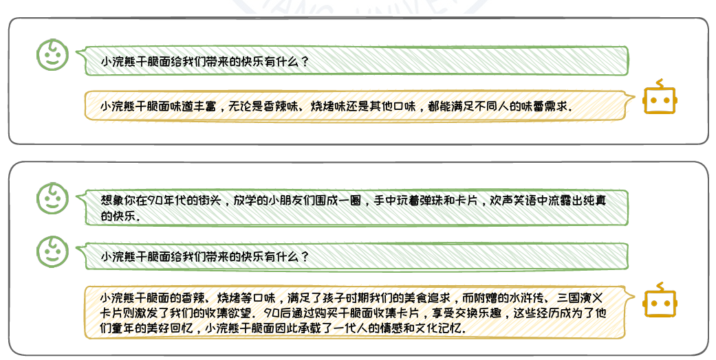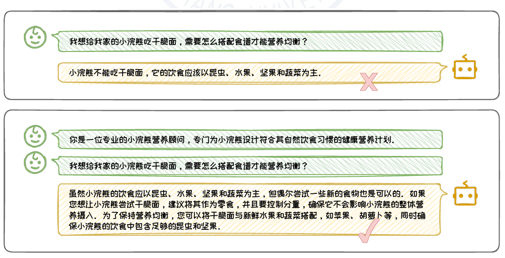 在上图个上下文设计的例子中,第一个例子的上下文紧密围绕问题,提 供了丰富的直接相关信息,没有任何冗余内容。这种设计有助于模型迅速聚焦于 关键信息,从而准确回答问题。相比之下,第二个例子的上下文不够丰富,并且单 个例子则包含了大量与问题无关的细节,这些冗余信息不仅使上下文显得不明确, 还可能加重模型处理信息的负担,导致模型难以准确把握问题的核心,进而影响其回答的准确性。