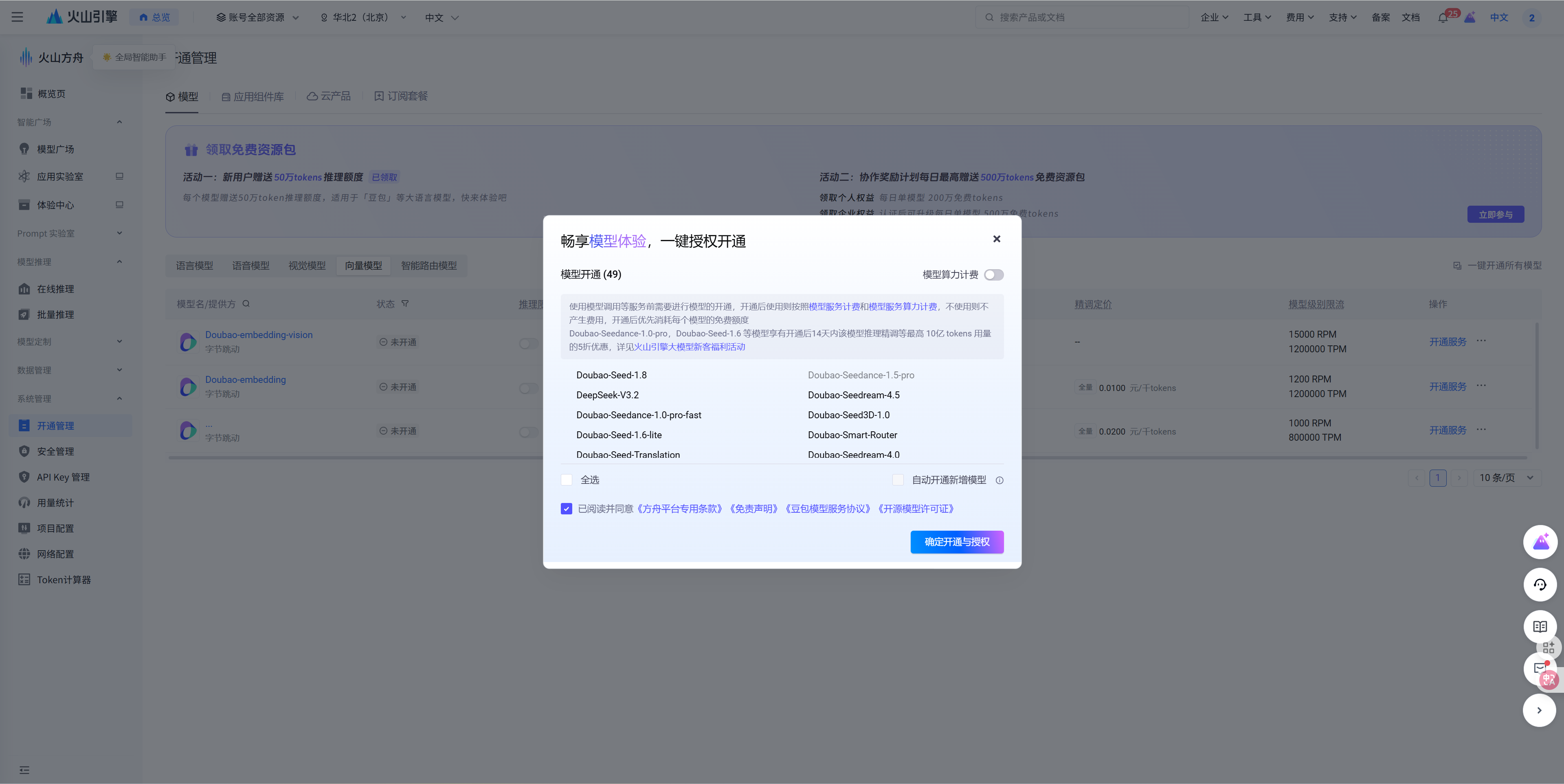 - 这里推荐火山引擎的API,有50w的免费额度。点击申请API key。