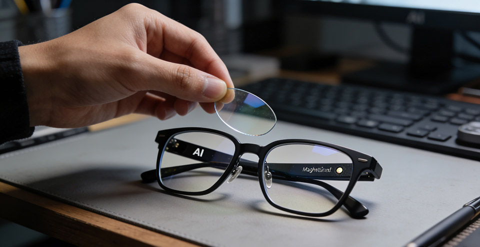 磁吸式处方镜片:用户可以单独购买符合自己度数的镜片,通过磁力吸附在眼镜框架内侧。