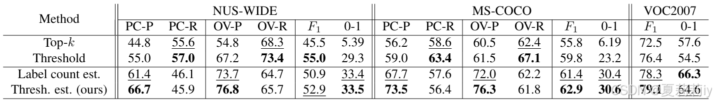 ③最大标签预测数量被设置为4因为NUS-WIDE和MS-COCO中88.6%和83.7%的标签数量小于或等于4