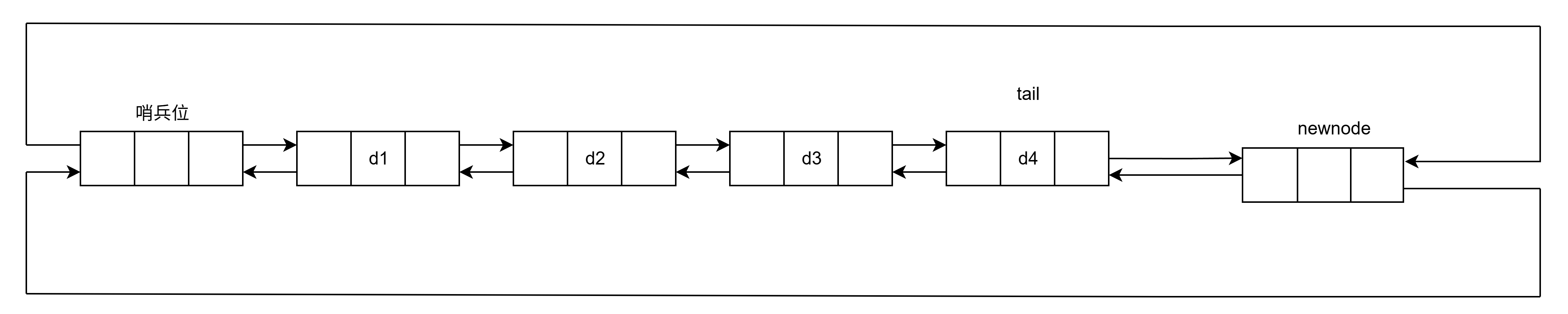 newnode->_next = sentinel; // 将新节点的next指针指向哨兵节点,表示新节点是链表的最后一个节点,形成环形结构。