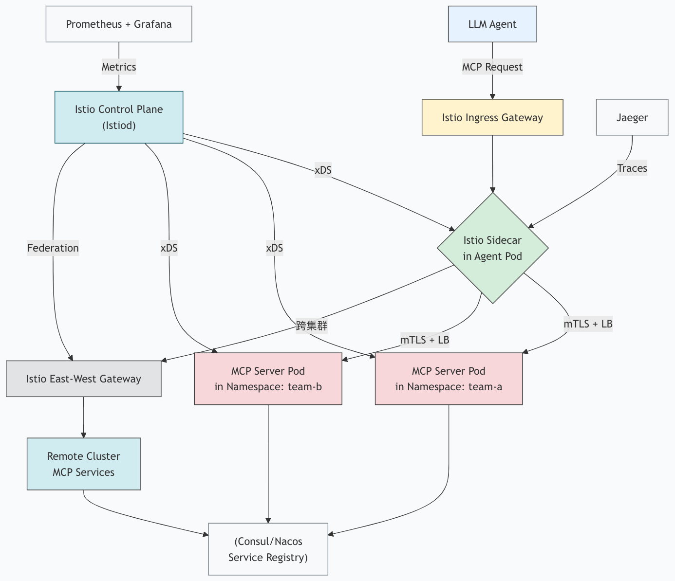- 协议透传:MCP 基于 HTTP/gRPC,Mesh 无需理解业务语义,仅处理网络层;