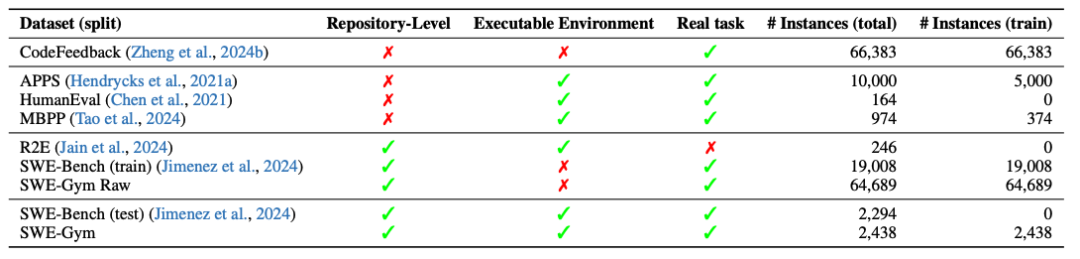 SWE-Gym构建了包含2,438个真实Python任务的可执行训练环境,每个任务配备独立运行时与单元测试,填补了软件工程领域缺乏训练环境的空白。该工作通过监督微调将Qwen2.5-Coder转化为专业代理: