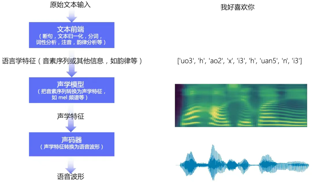 AI 助手的语音输出,需经过以下三个关键步骤,每个环节都直接影响 “说话” 的质量:
