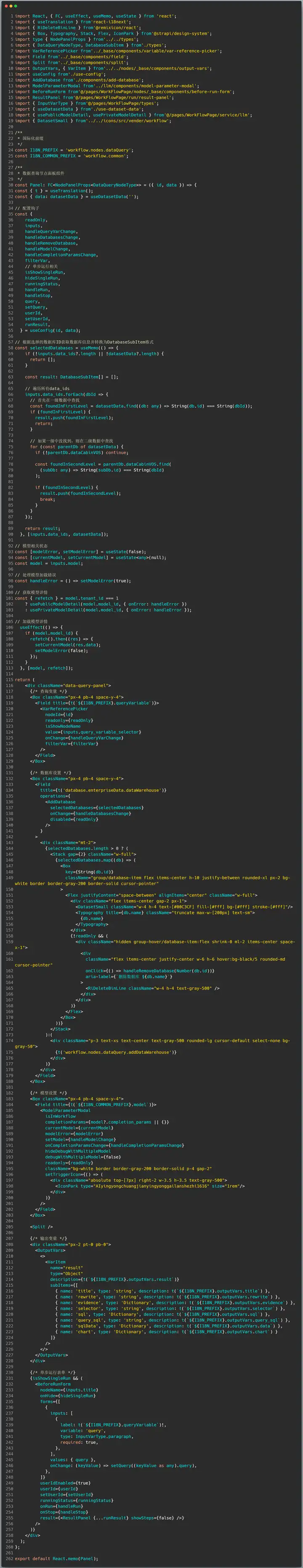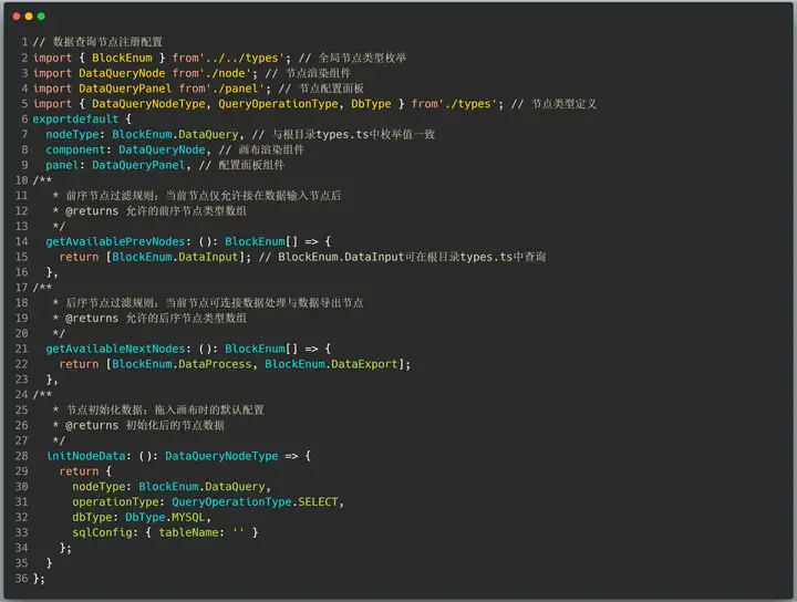 代码中特别标注 “需先在根目录 types.ts 扩展 BlockEnum.DataQuery 枚举”,规避 “节点注册后画布不显示” 的常见错误。
