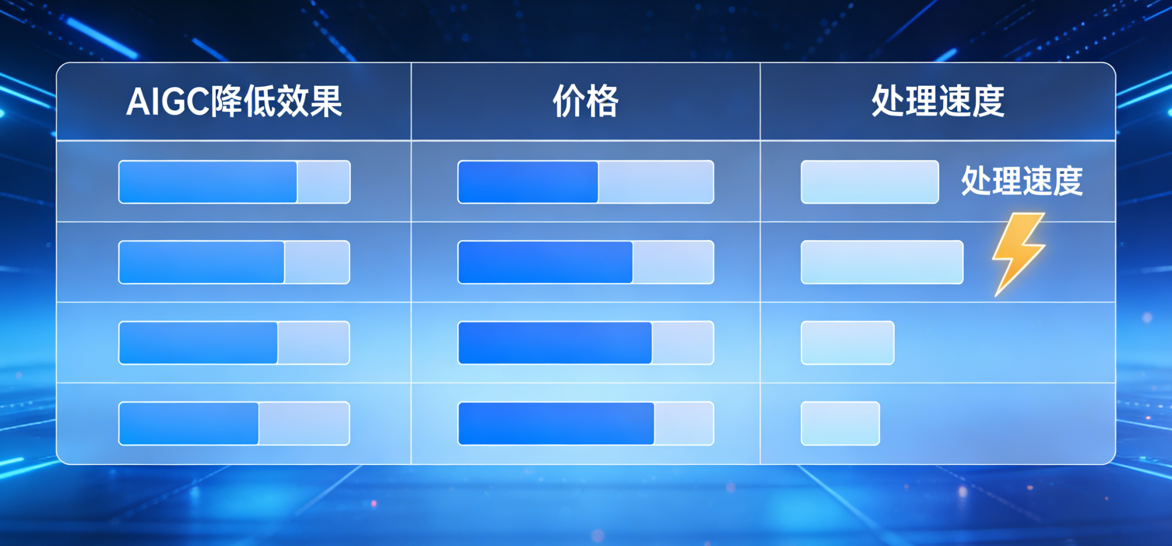 为了全面评估快降重网的实际表现,我选择了市场上4款主流降重工具进行横向对比测试。测试采用同一篇查重率45%、AIGC疑似率68%的论文作为样本,记录各工具的处理效果。