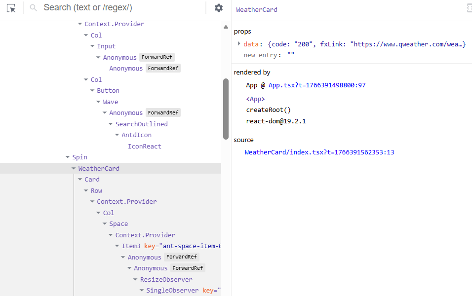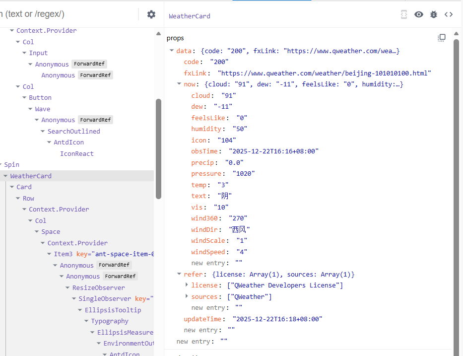 - 将获取的数据通过props传递给 WeatherCard 组件